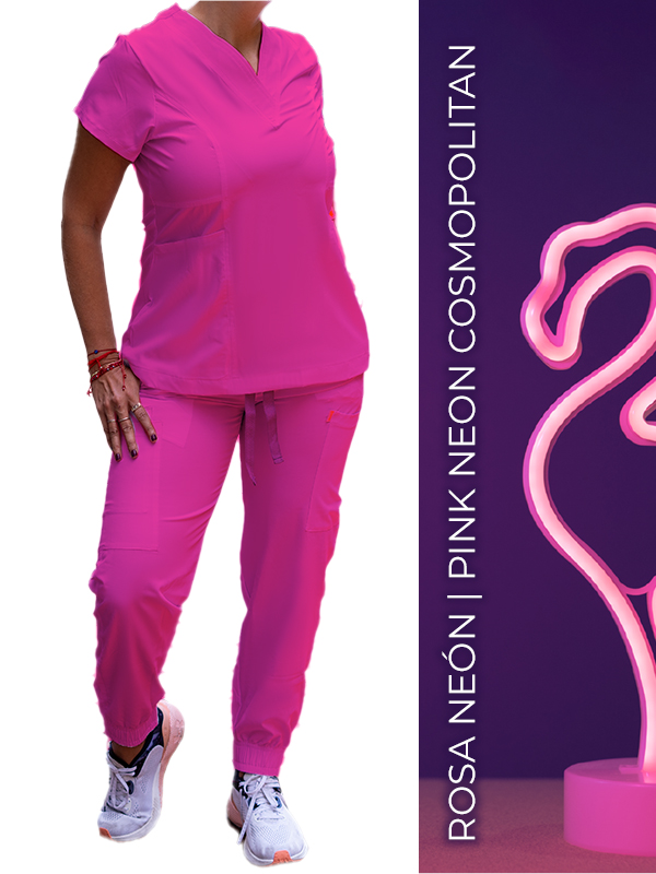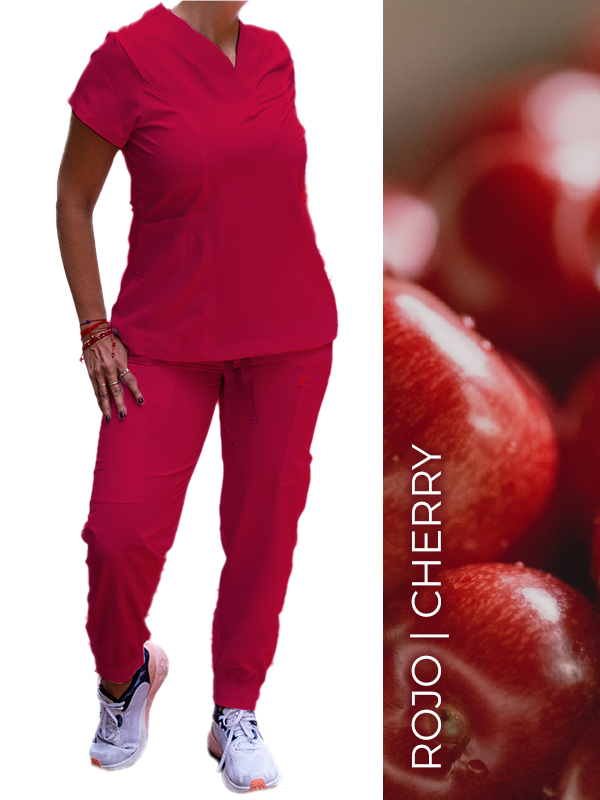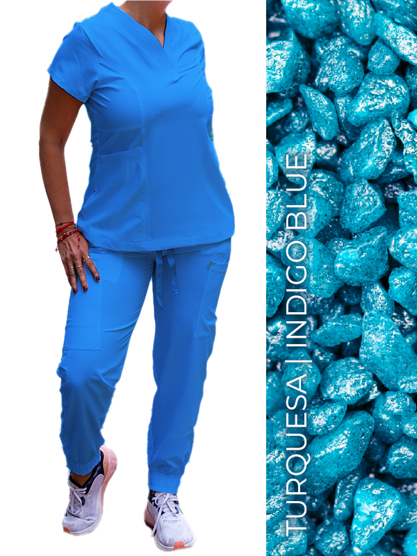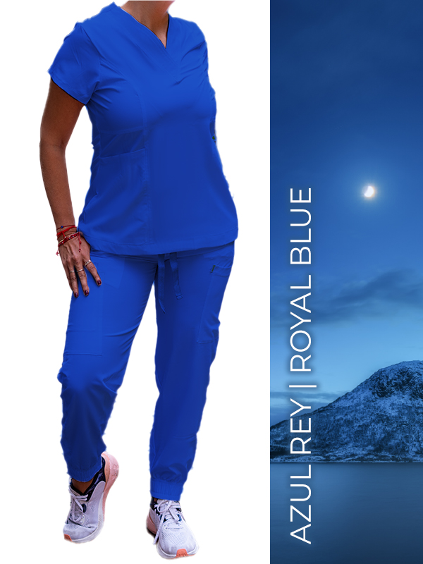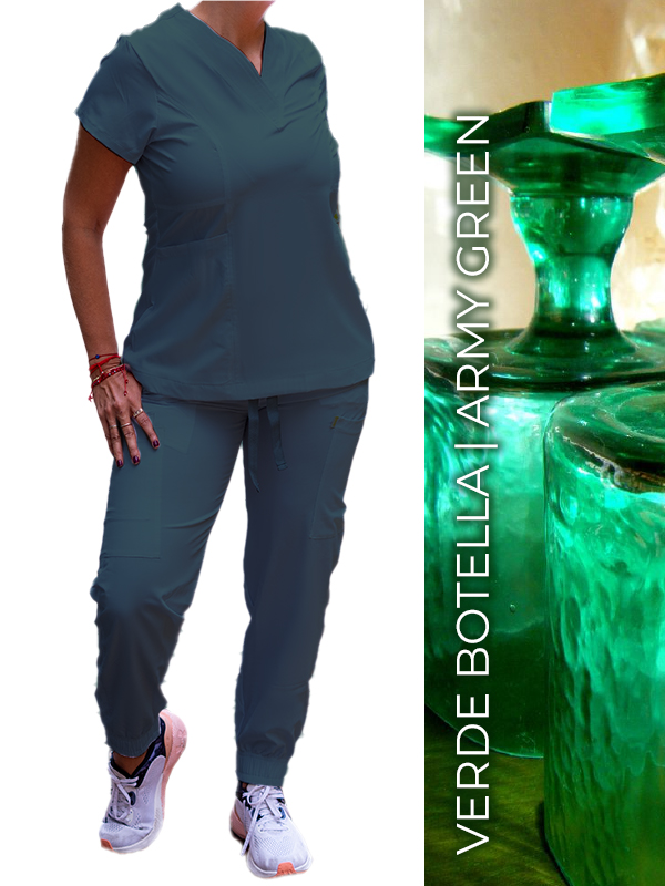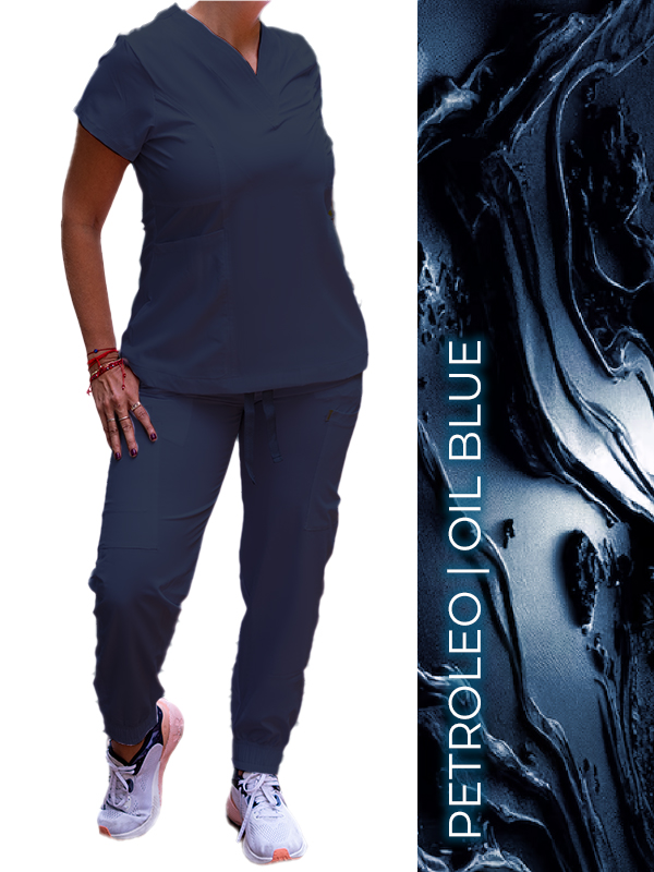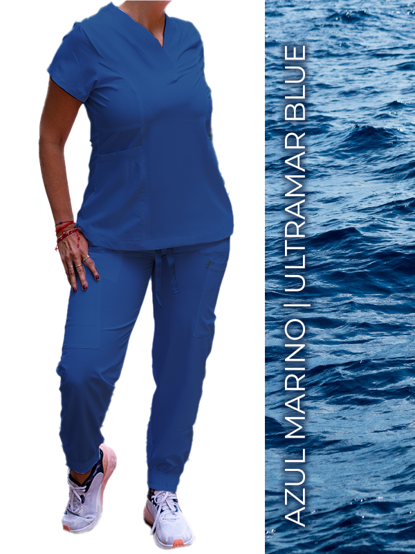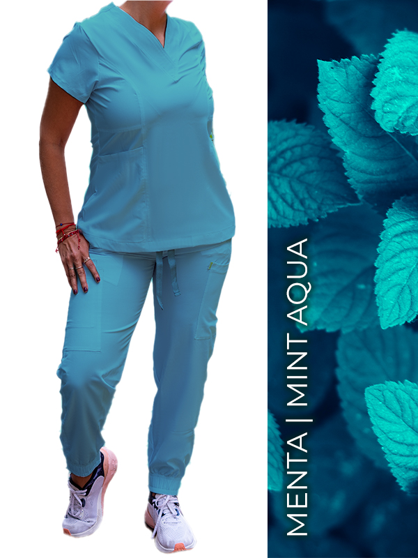 Es un set con un top médico cuello V, manga corta, diseño estilizado para una silueta sofisticada con costuras princesa que realzan la forma del cuerpo que te brindarán una apariencia nítida con la eficiencia que necesitas para largas horas en el hospital; dos bolsillos frontales para colocar tus elementos esenciales. El pantalón es tipo jogger que le da un aspecto moderno, la cintura alta brinda cobertura y la pretina tiene una jareta de ajuste para darte mayor comodidad , para priorizar la organización tiene 5 bolsillos: dos bolsillos laterales , dos tipo cargo y uno para celular que mantiene todo perfectamente guardado.
