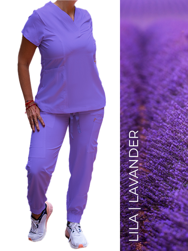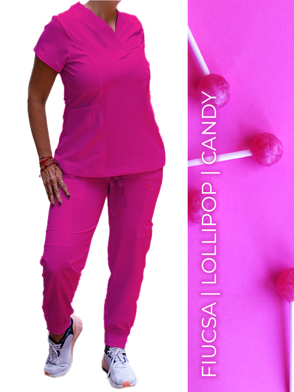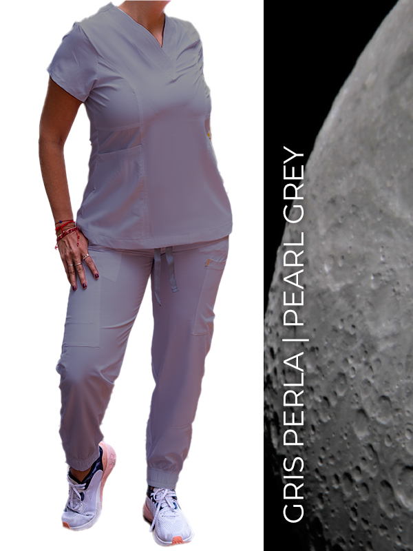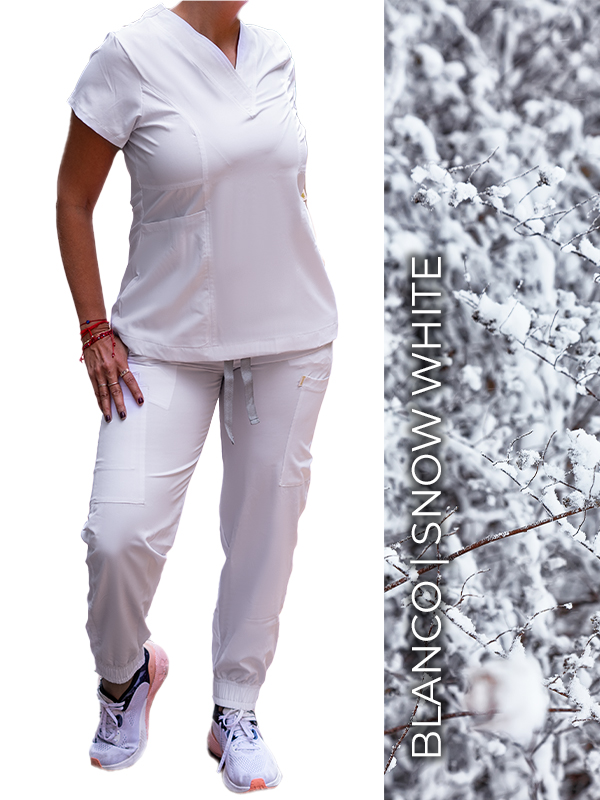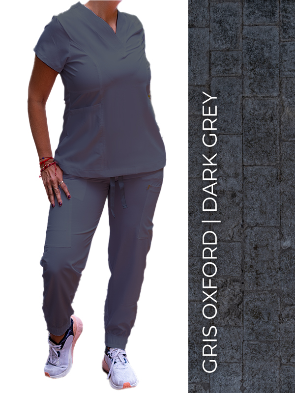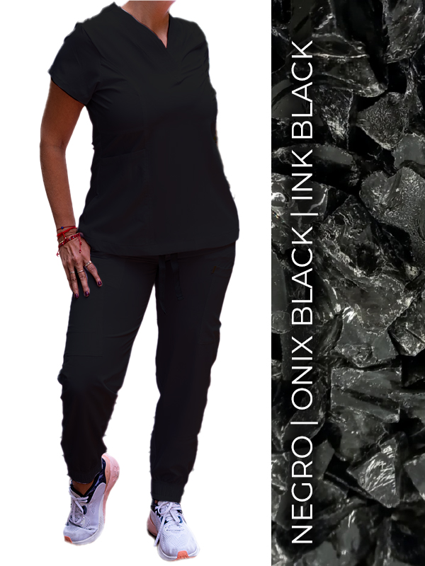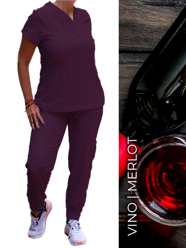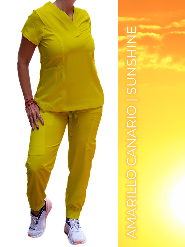 Es un set con un top médico cuello V, manga corta, diseño estilizado para una silueta sofisticada con costuras princesa que realzan la forma del cuerpo que te brindarán una apariencia nítida con la eficiencia que necesitas para largas horas en el hospital; dos bolsillos frontales para colocar tus elementos esenciales. El pantalón es tipo jogger que le da un aspecto moderno, la cintura alta brinda cobertura y la pretina tiene una jareta de ajuste para darte mayor comodidad , para priorizar la organización tiene 5 bolsillos: dos bolsillos laterales , dos tipo cargo y uno para celular que mantiene todo perfectamente guardado.