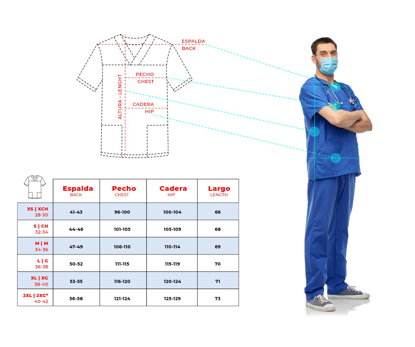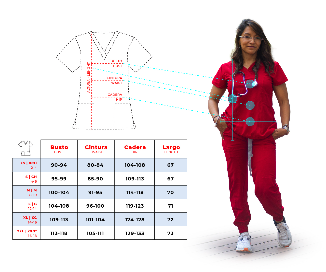 Material: 95% Poliéster reciclado | 5% Spandex con tecnología antifluídos e hipoalergénico